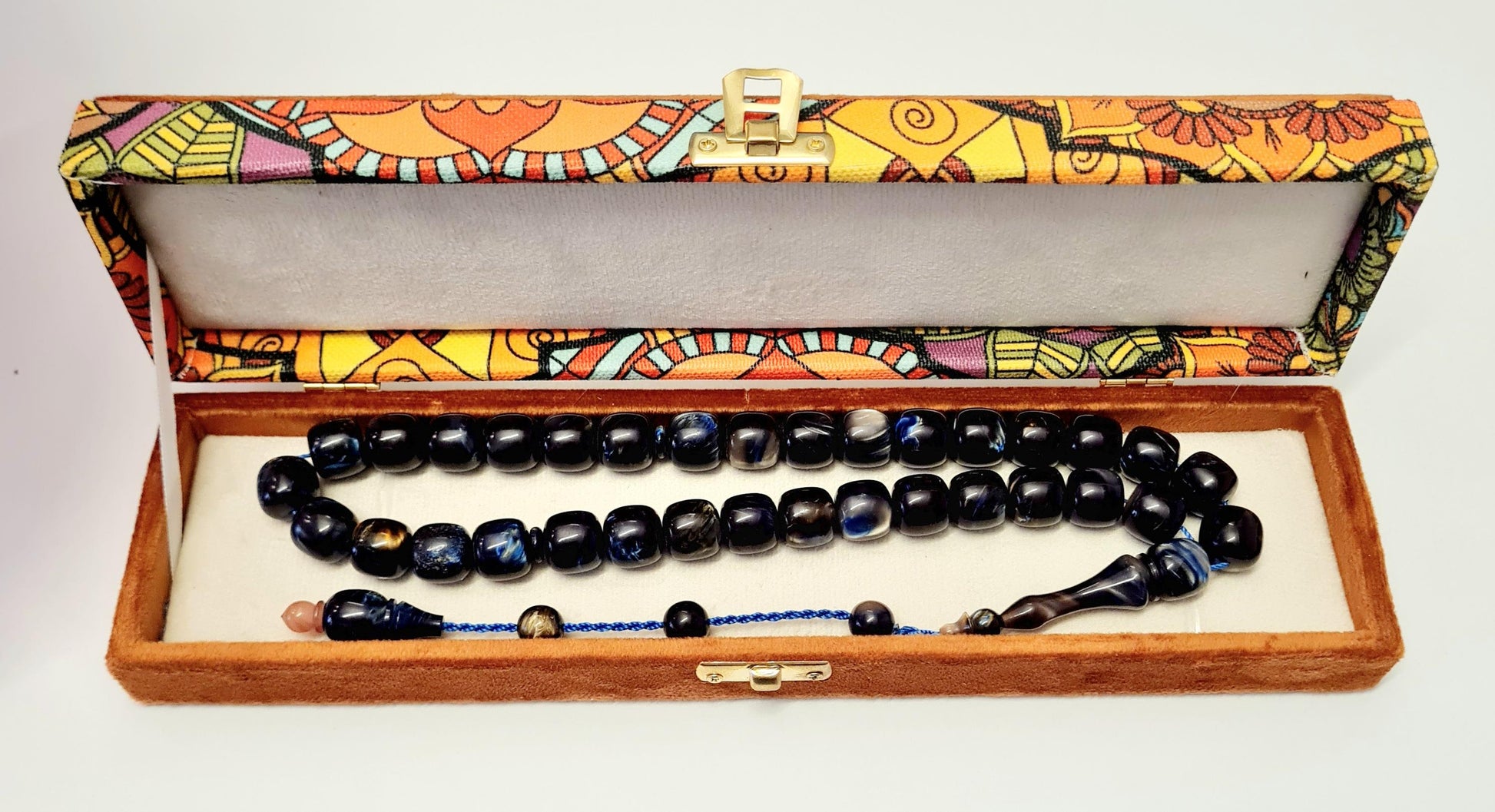 Collectible Katalin Prayer Beads, Handmade, 33 Beads, Moire Large Beads, 19x18 mm, 81 Gr, 44 cm, Special Velvet Box