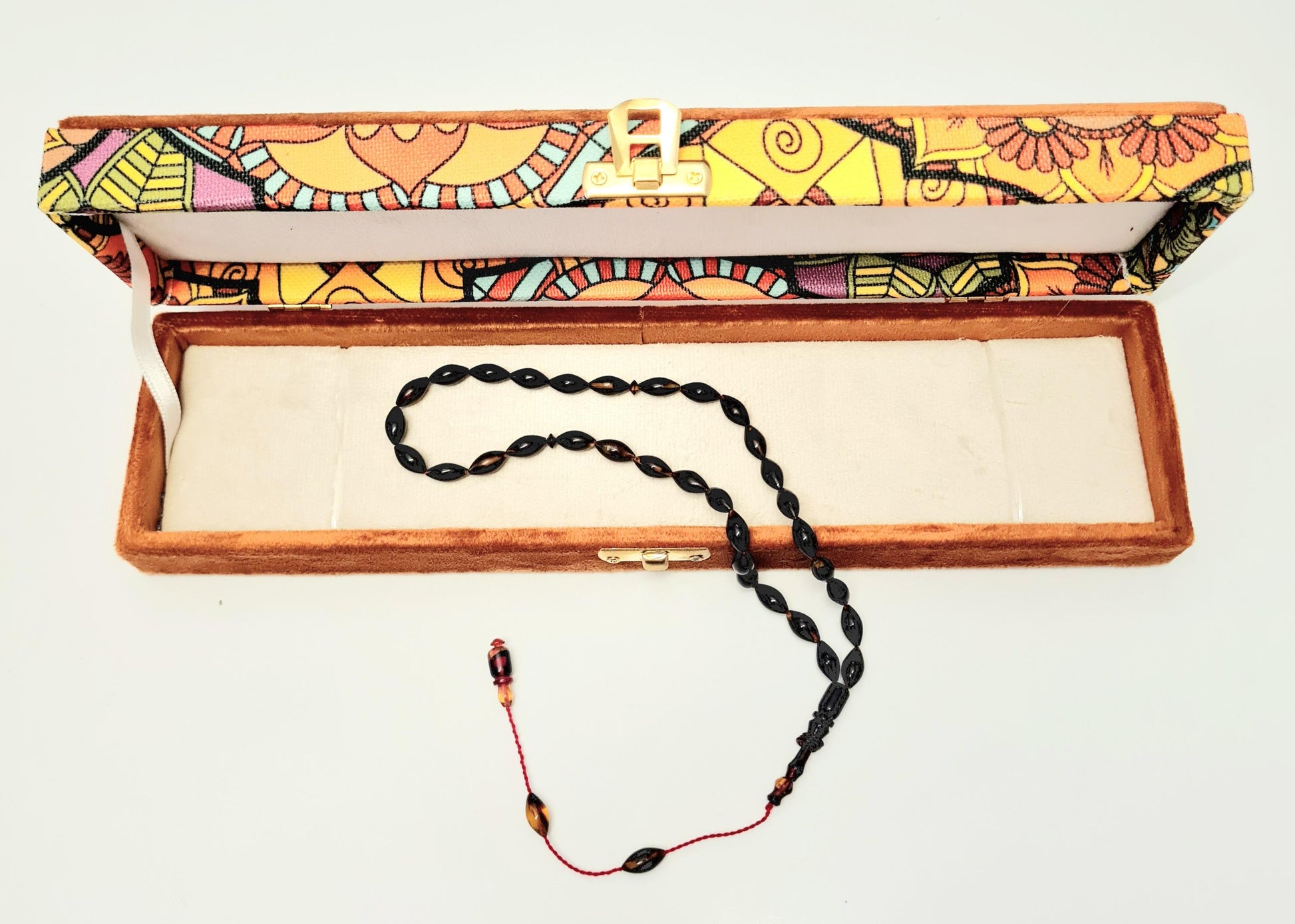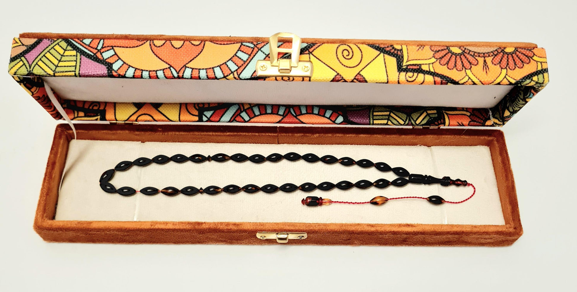 Master Handmade Caretta Caretta Turtle Collectible Prayer Beads in Special Velvet Box, Sequential System, Pen Workmanship, 6X10 mm, 34 cm, 10 Gr