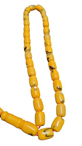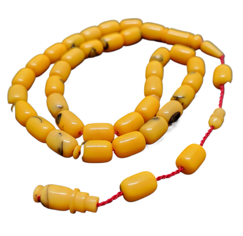 Bu özel koleksiyonluk tespih, eski bowling toplarından ustaca işlenmiş benzersiz bir el sanatı örneğidir. 35 cm uzunluğunda ve 23 gram ağırlığında olan bu nadide parça, 8 x 12 mm boyutlarındaki taneleriyle dikkat çekiyor. Kuru torna tekniğiyle el yapımı olarak üretilen tespihin sarı renkli taneleri üzerindeki doğal desenler, her bir parçayı eşsiz kılıyor. Kırmızı iplik detayı ve özenle işlenmiş imame kısmıyla geleneksel tespih sanatının modern bir yorumunu sunan bu parça, koleksiyonerler için özel bir değer taşıyor. Her bir tanesinin özenle işlenmesi ve bowling topu malzemesinin dayanıklı yapısı, uzun ömürlü kullanım sağlıyor. Hem dekoratif bir aksesuar hem de değerli bir koleksiyon parçası olarak öne çıkan bu tespih, özgün tasarımıyla dikkat çekiyor.