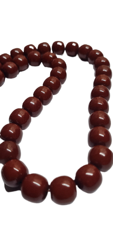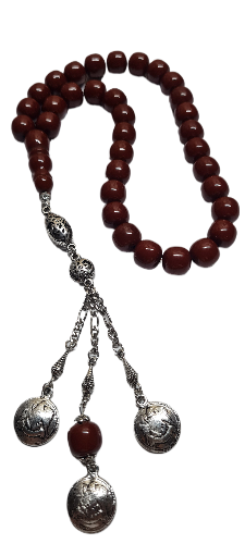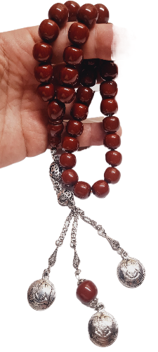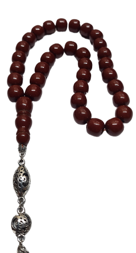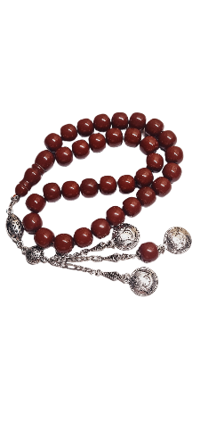Bu özel koleksiyonluk tespih, geleneksel el sanatlarının muhteşem bir örneğidir. 13x12,5 mm ölçülerindeki kahverengi taneleri, usta ellerde özenle işlenmiş kuru torna tekniğiyle hazırlanmıştır. Arnavut zinciri püsküllü tasarımı, klasik estetik ile modern zarafeti birleştirmektedir. Eski çubuk döküm malzemeden üretilen bu tespih, antik gümüş görünümlü metal aksesuarlarla süslenmiştir. Her bir detayında ustalığın izlerini taşıyan bu tespih, koleksiyonerler için değerli bir parça olmanın yanı sıra, günlük kullanım için de uygundur. Özel işçiliği ve seçkin malzemeleriyle, tespih tutkunları için benzersiz bir seçenek sunmaktadır. Her biri el yapımı olan bu tespihlerin kendine has karakteri, onu daha da özel kılmaktadır.
