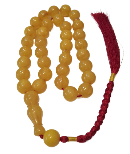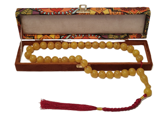 BÜYÜK BOY Koleksiyonluk Katalin Tespih, 101 Gram, 15,5x15,5 mm, 54 cm Uzunluk, Özel Kadife Kutulu, Hardal Rengi, Usta İşi