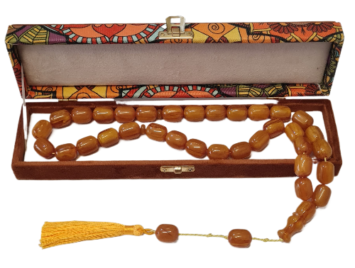 ÖZEL DEĞERİ YÜKSEK OLAN KADİFE TESPİH KUTUSU İLE BERABER GÖNDERİLMEKTEDİR. ÜRÜN EL YAPIMI OLDUĞUNDAN YALNIZCA 1 ADET ÜRETİLMİŞTİR.KOLLEKSİYONLUK TESPİHTİR.