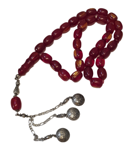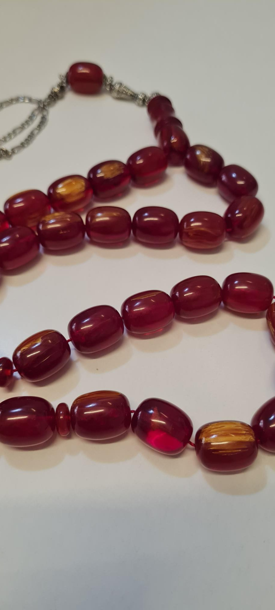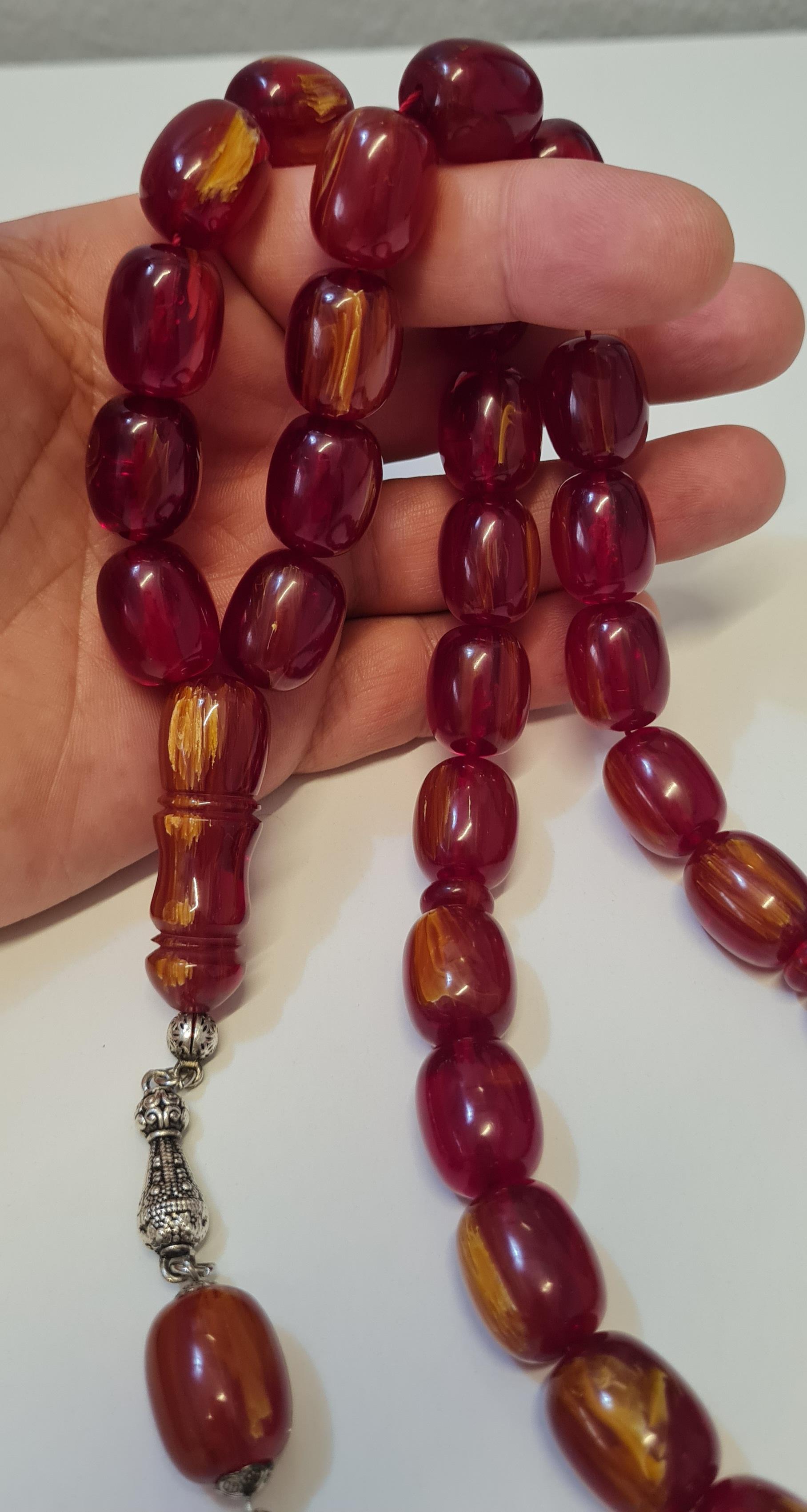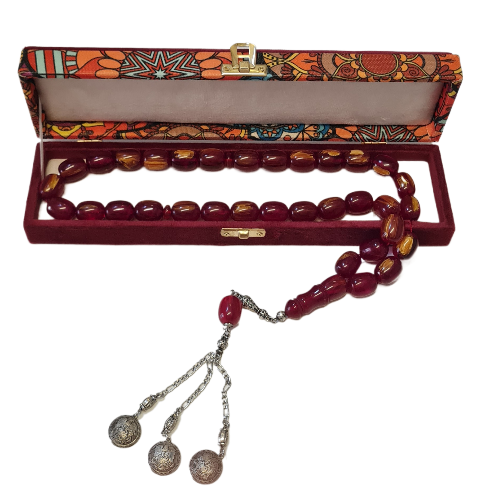 Katalin Tesbih, 150 Gram, 15x20 mm, 56 Santim, Eski Döküm Çubuk, Koleksiyonluk, El İşçiliği, Kadife Kutulu, Hardal Rengi (VİŞNE)