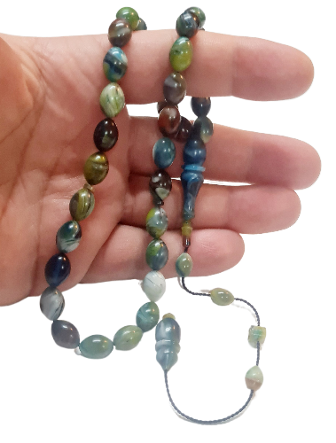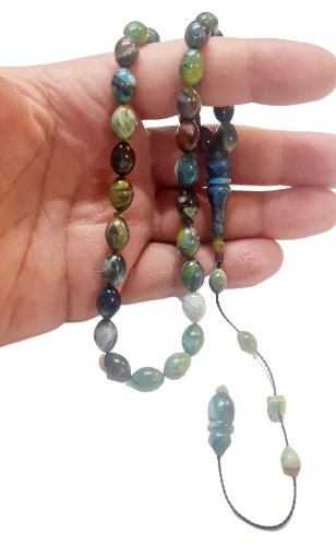Geleneksel sanatın modern yorumu olan bu özel koleksiyon tespihi, 12x8 mm ölçülerindeki taneleriyle göz alıcı bir tasarıma sahiptir. Eski Fransız Galilite malzemeden ustaca tıraşlanarak el yapımı olarak üretilen bu eşsiz parça, turkuaz ve krem tonlarının hareli geçişleriyle büyüleyici bir görünüm sunar. Kalem sistem olarak tasarlanan tespih, özenle dizilmiş taneleriyle koleksiyonerler için benzersiz bir değer taşır. Her bir tanenin kendine özgü hareli deseni, tespihin autentik karakterini vurgular. Kırmızı bağlantı ipi ve özel işçiliğiyle, geleneksel tespih sanatının en zarif örneklerinden biridir. El yapımı olması sebebiyle her bir tespih benzersiz karaktere sahiptir ve koleksiyonunuza değer katacak nadide bir parçadır.
